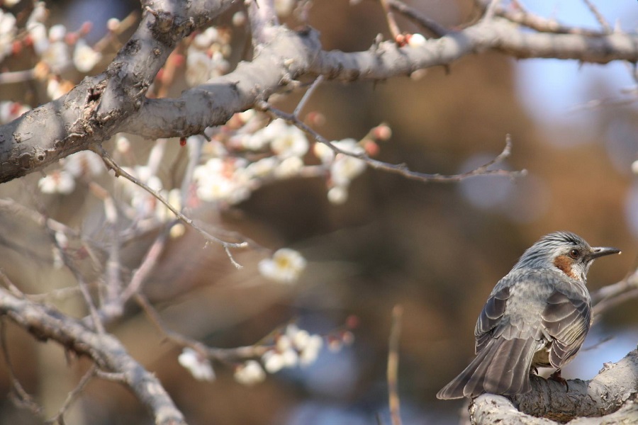 白梅とヒヨドリ