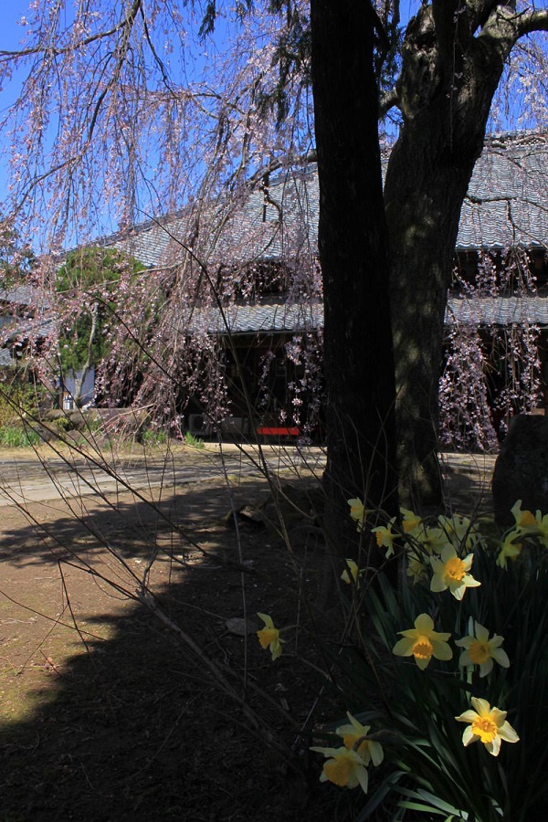 泉子育観音/慶龍寺の水仙と枝垂れ桜