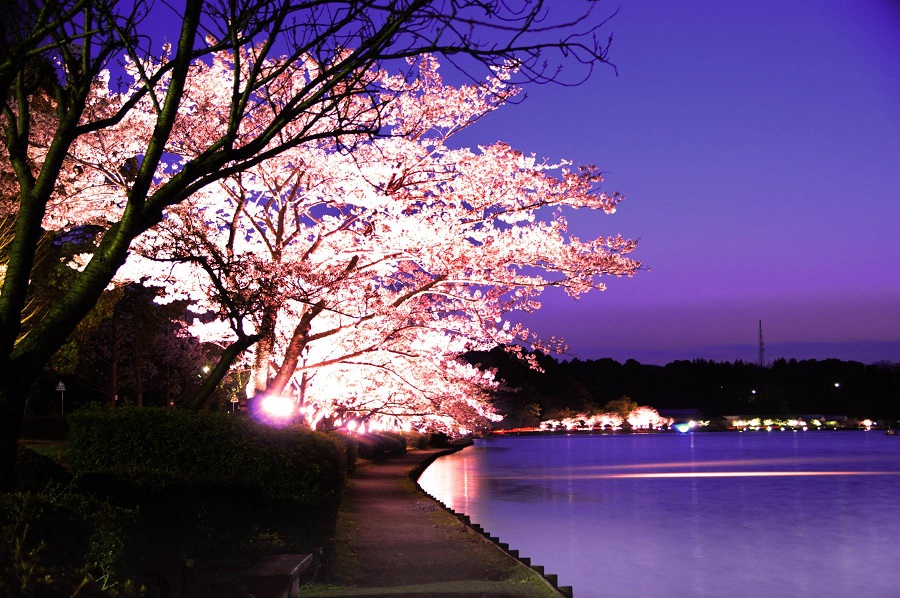 千波湖畔の桜ライトアップ02