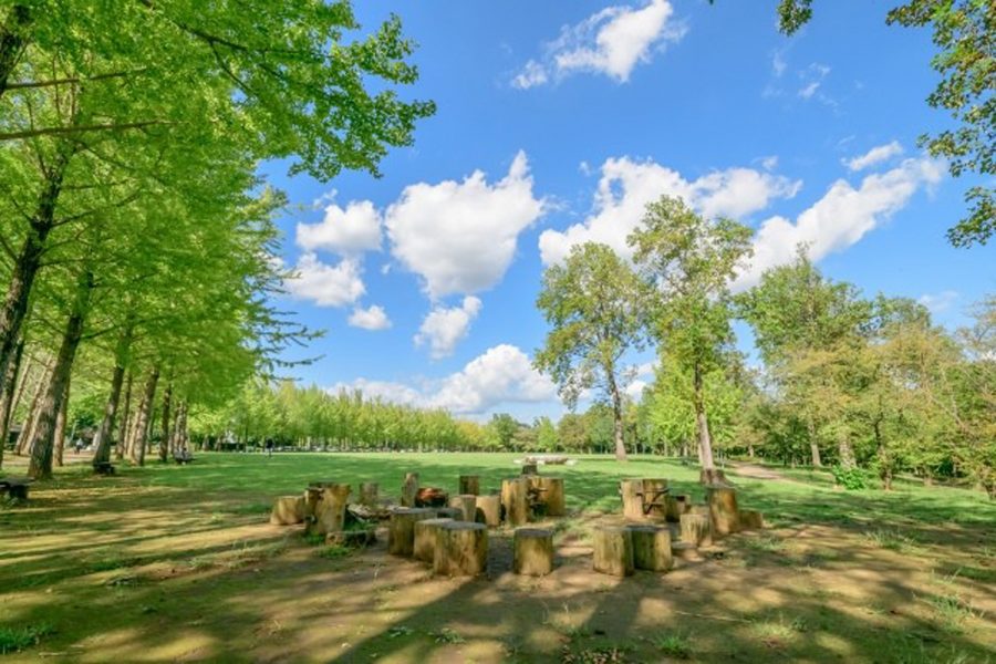 公園内には、芝生広場、池、アヤメ園、そして全天候型テニスコートが5面あり、休日はたくさんの家族連れや若者達で賑わいます。